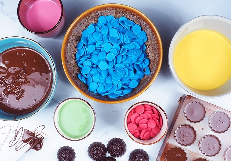 Candy melts zijn cacaoboter drops die je makkelijk kunt smelten in de magnetron. Met candy melts kun je candy molds vullen om lekkere snoepjes en lolly’s te maken. Voor lolly’s heb je deze handige lollystokjes nodig. Je kunt candy melts ook gebruiken voor het maken van kleurrijke candy barks. Of maak brushstrokes om je taarten een bijzondere decoratie te geven. De candy melts van Wilton zijn verkrijgbaar in veel verschillende kleuren net als de candy buttons van PME. Je kunt de witte candy melts zelf kleuren met een kleurstof die geschikt is voor het kleuren van cacaoboter.