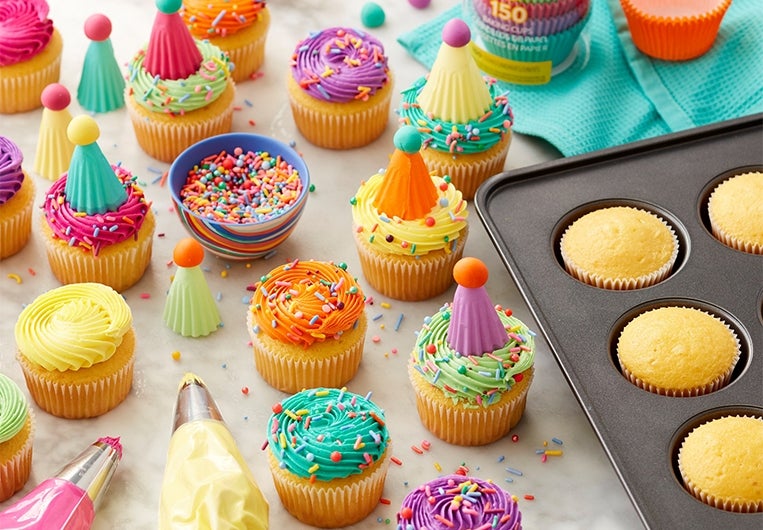 Cupcakes zijn kleine cakejes, gebakken in een papieren of aluminium cupcake vormpje. Bij Deleukstetaartenshop vind je een uitgebreid assortiment van meer dan 200 baking cups. In de verschillende cupcake recepten van Deleukstetaartenshop wordt stap voor stap uitgelegd hoe jij heerlijke cupcakes kunt bakken en decoreren. Bak bijvoorbeeld red velvet cupcakes, oreo cupcakes, carrot cake cupcakes en frambozen cupcakes. Vergeet ook niet om bij de muffin recepten te kijken. Zoals chocolade muffins en appel muffins, die je eenvoudig kunt bakken in een muffin bakvorm van Wilton of PME en kunt inpakken in een muffinvorm om je muffins zo mooi mogelijk te kunnen presenteren!