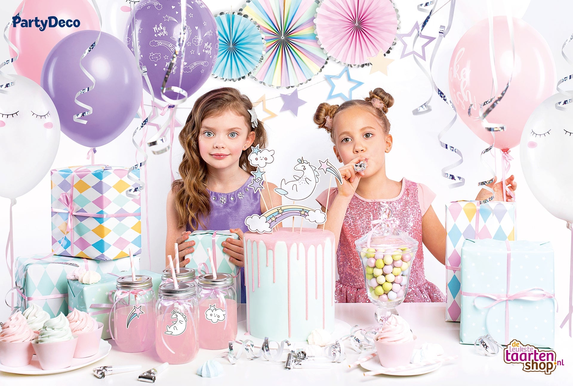 Zonder visite op de verjaardag kan het een beetje saai zijn. Maak er daarom een bijzondere dag van voor je kind. Een leuk idee om de dag extra speciaal te maken is om er een themafeest van te maken. Is je kleine helemaal gek van eenhoorns? Zorg er dan voor dat de slingers, ballonnen, taart, cadeauverpakking, kartonnen bekers enz. allemaal in hetzelfde thema zijn. Je kind zal zijn ogen uitkijken! Ook Deleukstetaartenshop heeft verschillende feestversieringen!