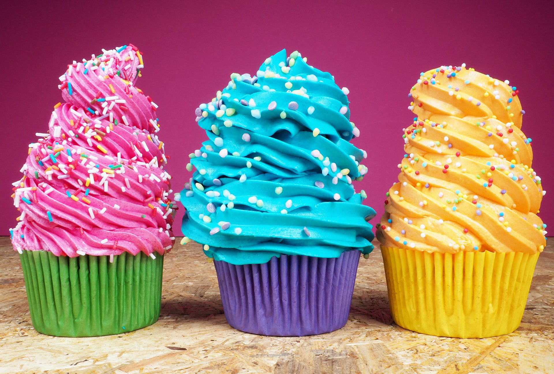 Bak cupcakes met de FunCakes bakmix voor Cupcakes, leuke cupcakevormpjes en een cupcake bakvorm. Bereid botercrème of Enchanted Cream en geef deze een leuke kleur. Voor een extra leuk effect kun je een driekleurige toef maken. Doe de crème in een spuitzak met spuitmond en je bent klaar voor de challenge!