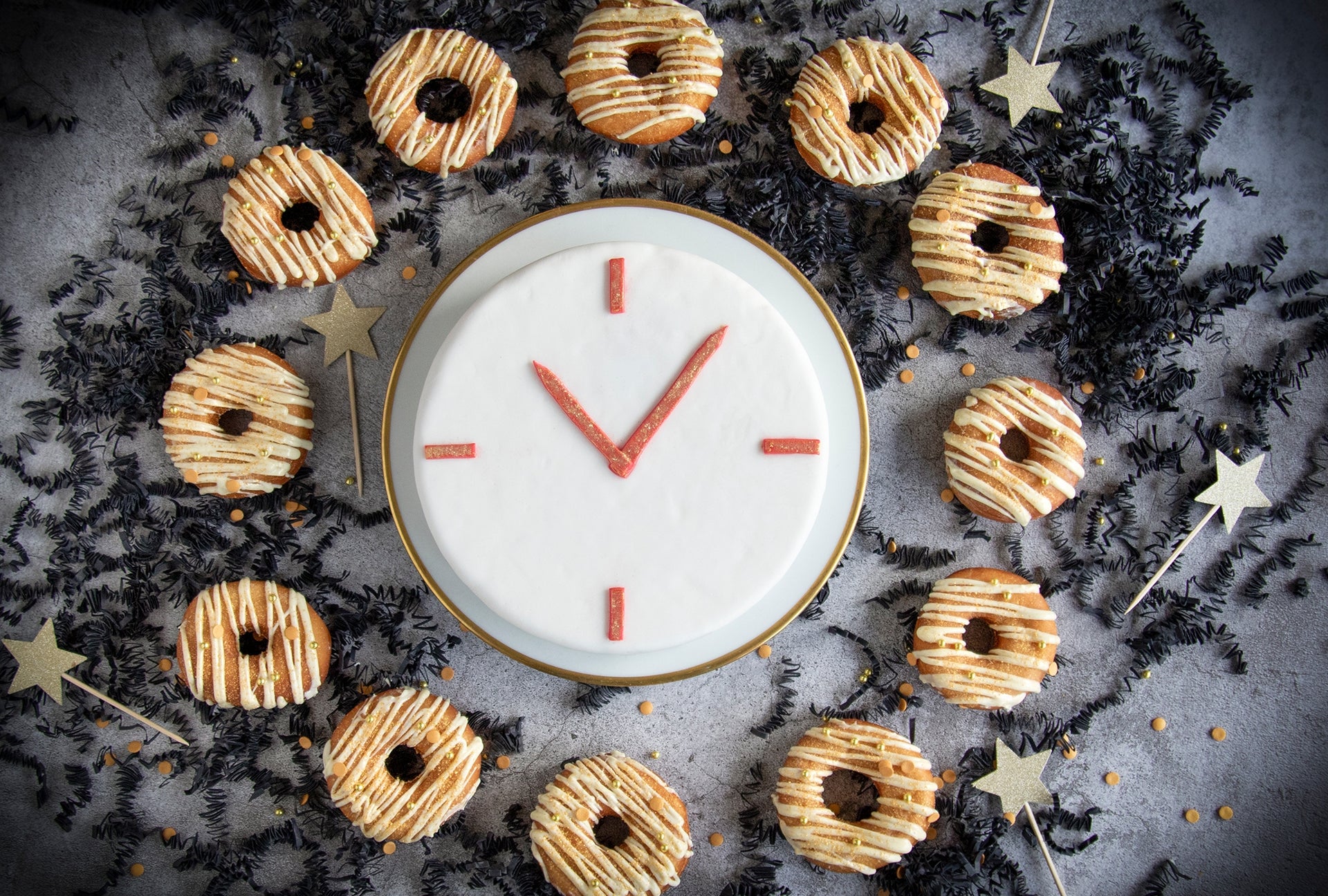 Bekijk zelf het recept voor de Oud & Nieuw Klok Taart en Donuts van Soulfood: