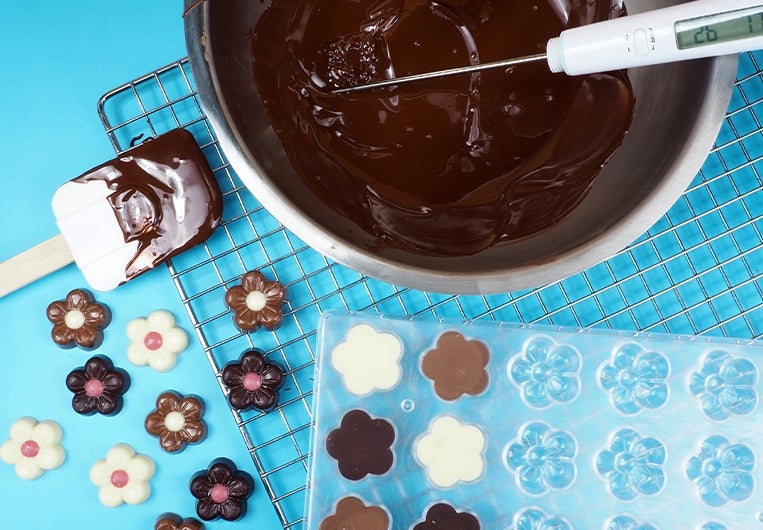 Op zoek naar gereedschap om chocolade te verwerken? Dan ben je op de juiste plek beland! Hier vind je een uitgebreid assortiment aan chocolade gereedschap, inclusief moulds, melting bottles, thermometers en nog veel meer. Met deze handige tools wordt het bewerken en creëren van chocolade een waar genot. Laat je creativiteit de vrije loop en maak de meest prachtige en smaakvolle chocoladelekkernijen!