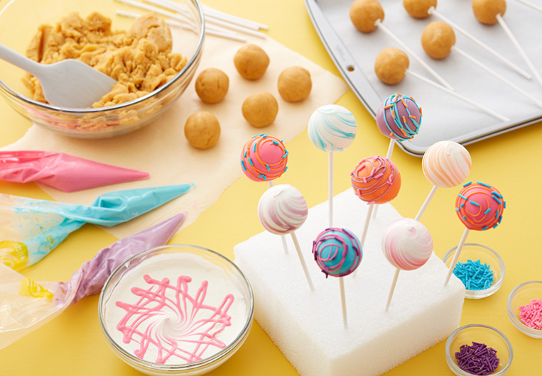 Altijd al een keer cakepops willen maken? De meeste cake lollies zijn gemakklijk te maken en met onze cake pop recepten maak jij zelf de mooiste creaties. Wat dacht je van brownie cake pops, cake pops kuikentjes voor pasen of cake pop spookjes voor halloween? Doop de lollipops in een heerlijk laagje chocolade of candy melts, zodat de buitenkant een knapperig laagje krijgt. Met de cake pop maker was het nog nooit zo gemakkelijk! Volg de stap voor stap aanwijzingen van onze recepten en laat je fantasie de vrije loop.