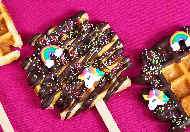 Zelfgemaakte wafels roepen om versierd te worden! Geef ze een heerlijk laagje glazuur in diverse kleuren. Of maak er chocolade wafels van en dip ze in gesmolten chocolade melts. Versier de wafels met toefjes slagroom, Enchanted Cream of botercrème. Decoreer de wafels met traditionele (choco) suikerparels, strooisels of suikerdecoraties. Steek een lollystokje in de wafel en je hebt een wafellolly gemaakt! Voor een heerlijk dessert serveer je een wafel met een bolletje ijs en een zoete saus.